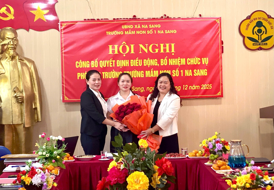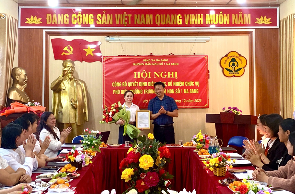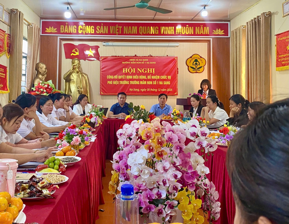 Ngày 05/12/2025 trường Mầm Non số 1 Na Sang long trọng tổ chức hội nghị công bố quyết định điều động , bộ nhiệm đồng chí Lò Thị Thoa giữ chức vụ phó hiệu trưởng, theo quyết định số 999/QĐ-UBND ngày 28/11/2025 của UBND xã Na Sang.