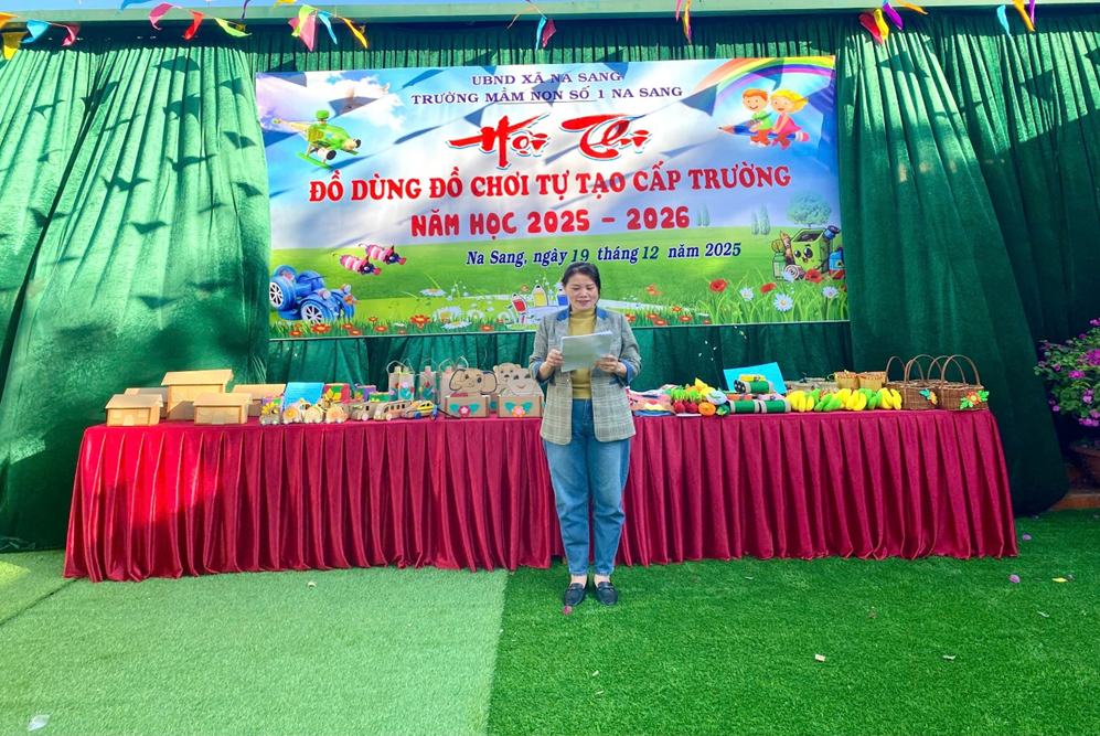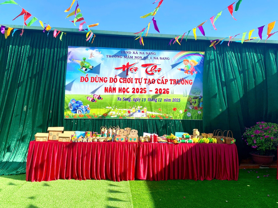 Xuất phát từ định hướng nâng cao chất lượng giáo dục toàn diện cho trẻ, đồng thời khuyến khích đội ngũ giáo viên phát huy tính chủ động và sáng tạo, Trường Mầm non số 1 Na Sang triển khai kế hoạch thực hiện nhiệm vụ năm học 2025 - 2026 và tổ chức Hội thi “Đồ dùng, đồ chơi tự tạo cấp trường” vào ngày 19 tháng 12 năm 2025.   Đây là hoạt động thiết thực, góp phần làm mới phương pháp dạy học, tạo thêm nhiều học liệu trực quan, sinh động cho trẻ trong các hoạt động hằng ngày.