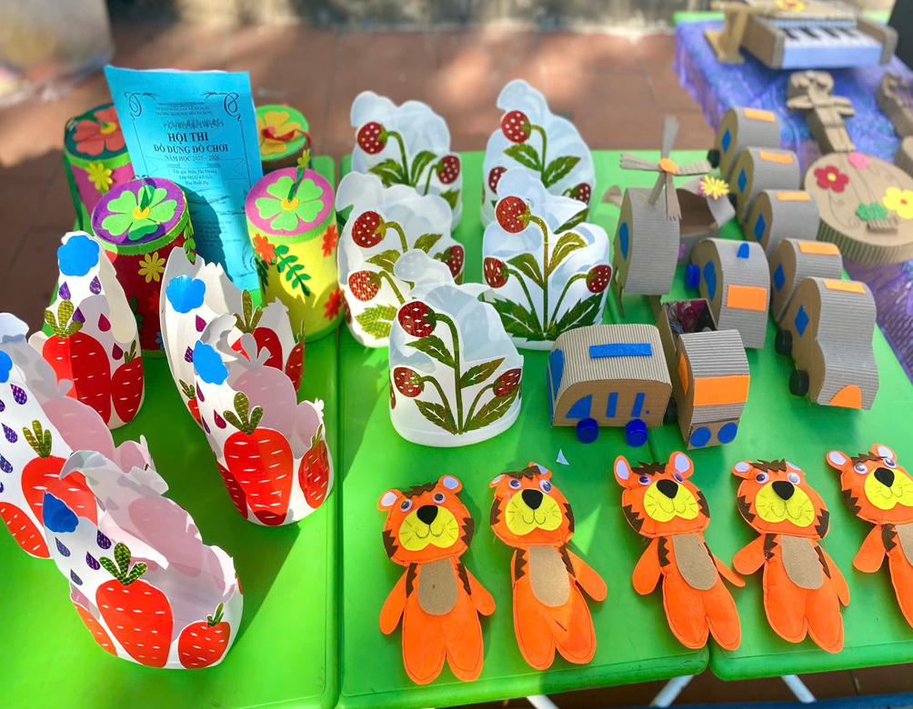 Hội thi không chỉ là dịp để các cô thể hiện tài năng, mà còn là cơ hội học hỏi, chia sẻ kinh nghiệm, góp phần xây dựng môi trường giáo dục lấy trẻ làm trung tâm. Các bộ đồ chơi được thiết kế theo các chủ đề học tập, góp phần làm phong phú thêm các góc hoạt động trong lớp học, giúp trẻ tích cực khám phá và trải nghiệm.