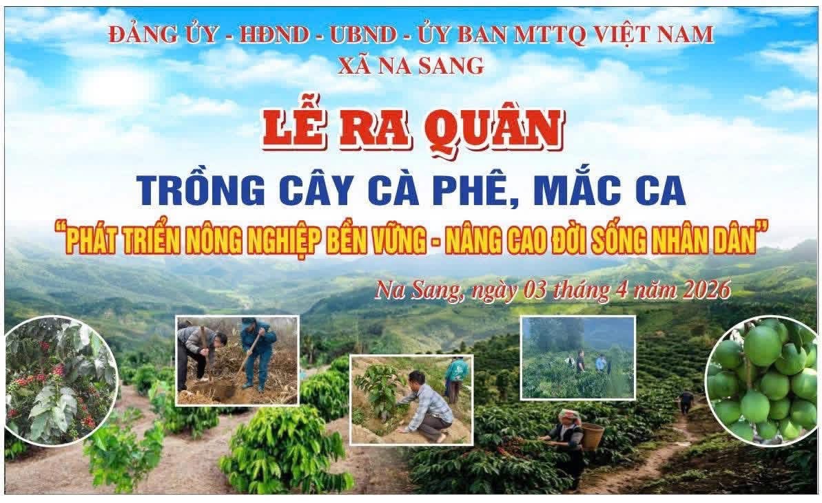 Hòa trong không khí thi đua sôi nổi phát triển kinh tế nông nghiệp, sáng ngày 3 tháng 4 năm 2026, Trường mầm non số 1 Na Sang tham gia hưởng ứng lễ ra quân đào hố trồng cây cà phê, mắc ca trên địa bàn xã Na Sang tại bản Huổi Xuân.